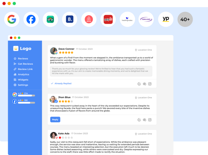 Keep tabs on hundreds of leading review sites from a single dashboard and maintain a spotless reputation wherever customers search.